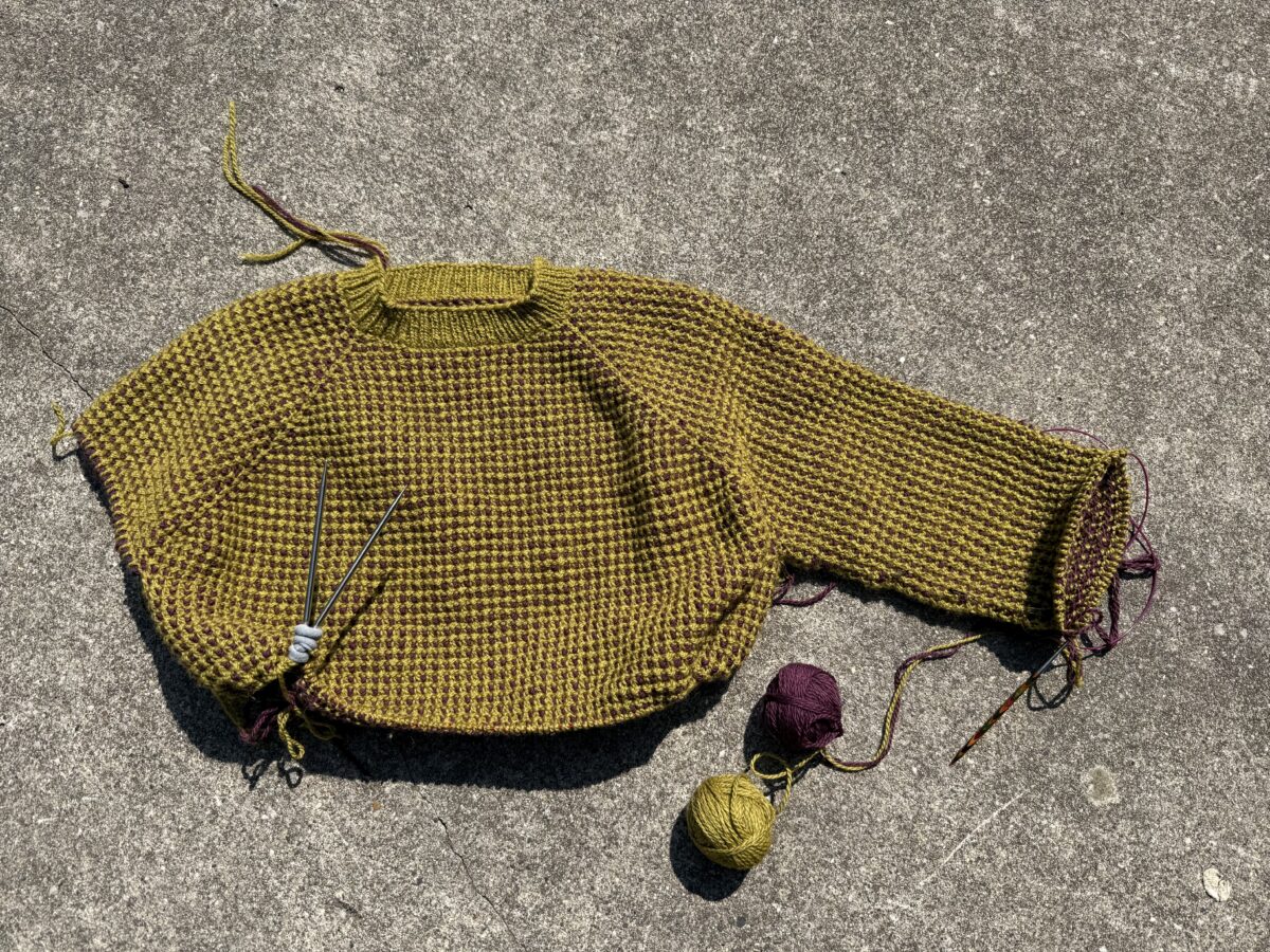 Your waffle though is GORGEOUS! You’re almost there! I knit one last year, it was also a black hole , and I finished it however when I put it on I discovered A) it may have been the best fitting sweater I had ever knit! Instant love. And 2) sadly, I also discovered I’d screwed up a line right across my bust so the waffle pattern was lined up instead of offset and it was a sttrong line noticeable by anyoen with eyeballs -something I couldnt live with. It meant tearing back to mid raglan.. I just could not so it became another (almost finished) striped sweater. I know you are going to LOVE yours!