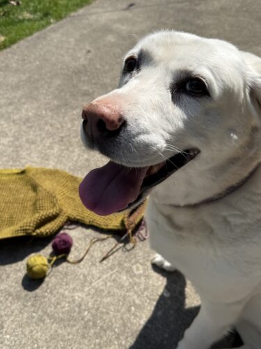 In the meantime, JoJo and I are happy to get outside for progress-photo-shoots. JoJo loves to pose with my knitting, don’t’cha know.