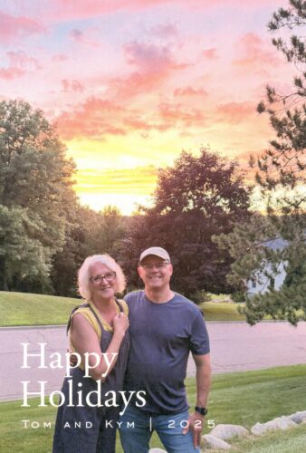 Every year, Tom and I send out a holiday card. When our kids were younger, our cards featured a family photo and a brief update blurb on the back. As our family evolved over the years, so did our cards. This is our 2025 version, along with the sentiment we included on the flip side . . .