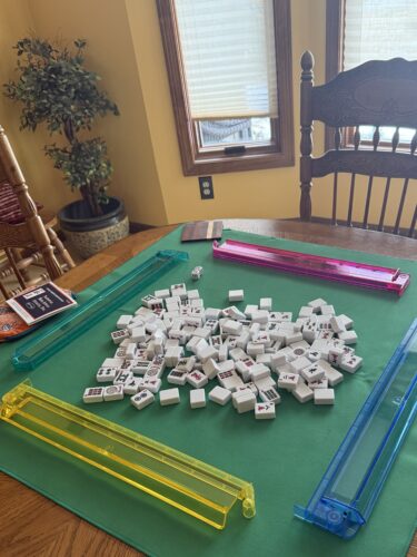 First, there’s the mahjong. I play twice a week (once in a large group of mahjong-ers at my local senior center, and once with a small group of friends). (I host these friend-games, by the way, because my house is at the perfect geographic center for all parties.) I really enjoy playing mahjong — it’s challenging, it takes me out of (ahem) world events for a while, and it puts me in good company on the regular. If you have a chance to join a group and learn to play, I highly recommend it! It’s a great way to build community and meet new people. (Check your local senior center or library to see if they have group play if you’d like to learn but don’t know how to begin.)