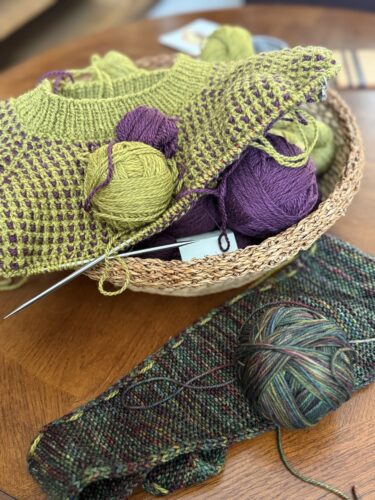 The book is beautiful. I love the idea of a signature representing an emotion or pillar. The sweater is coming along. It’s fun to see the different color combinations that have been chosen. I do wonder at the choice of that pullover for knitting in one month but I imagine they thought it created a challenge and an opportunity for learning for experienced knitters. It sounds as if the instructor is doing a terrific job.
