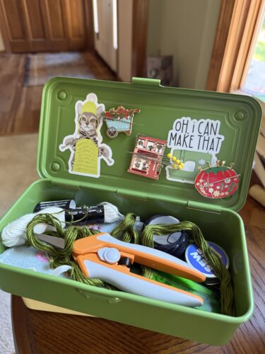 Several years ago, I ordered a Toyo Steel Stackable Storage Box that was available at one of the needlework shops I frequent online (I’m pretty sure it was Brooklyn Haberdashery. . .). I’d been wanting one for a while, but every time I went to order, they were already sold out! Anyway. I finally nabbed one (the green one), and I LOVE it. I use it for my embroidery and hand stitching supplies. It’s sturdy and charming and easy to tote around. It will last a long, long time. Like . . . I imagine for the rest of my (hopefully long) life.