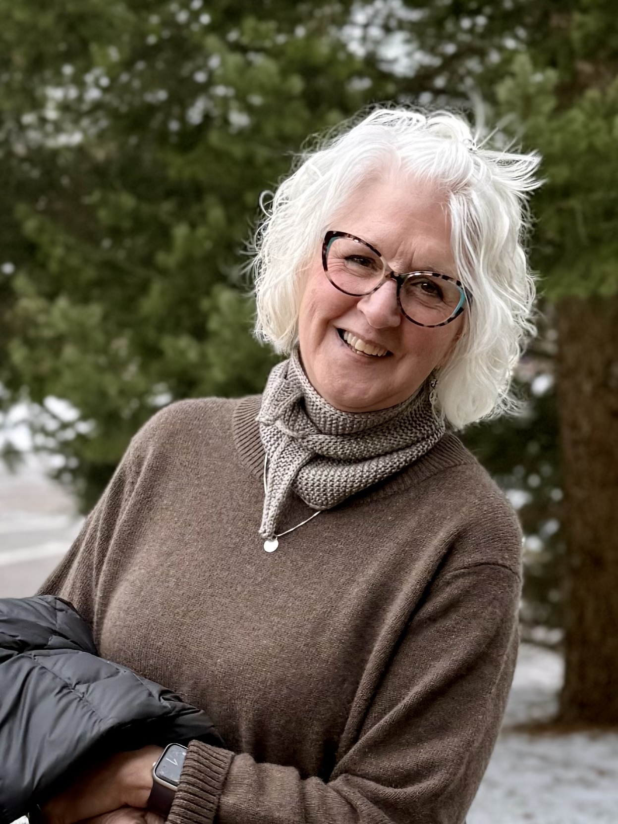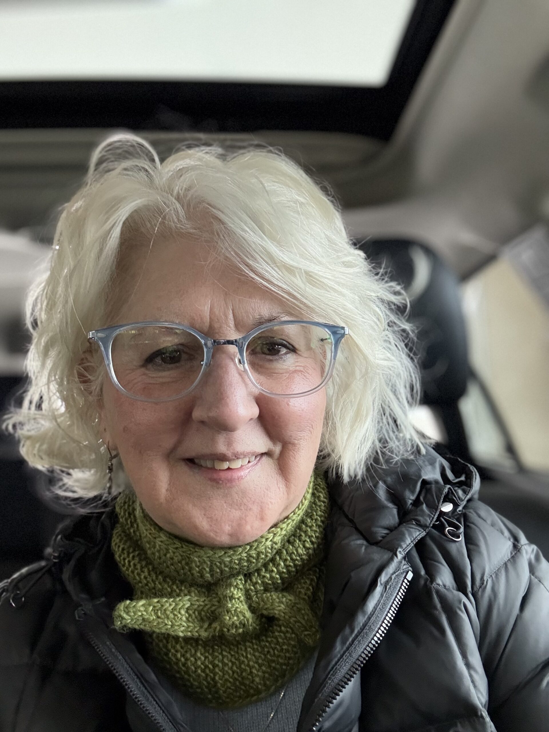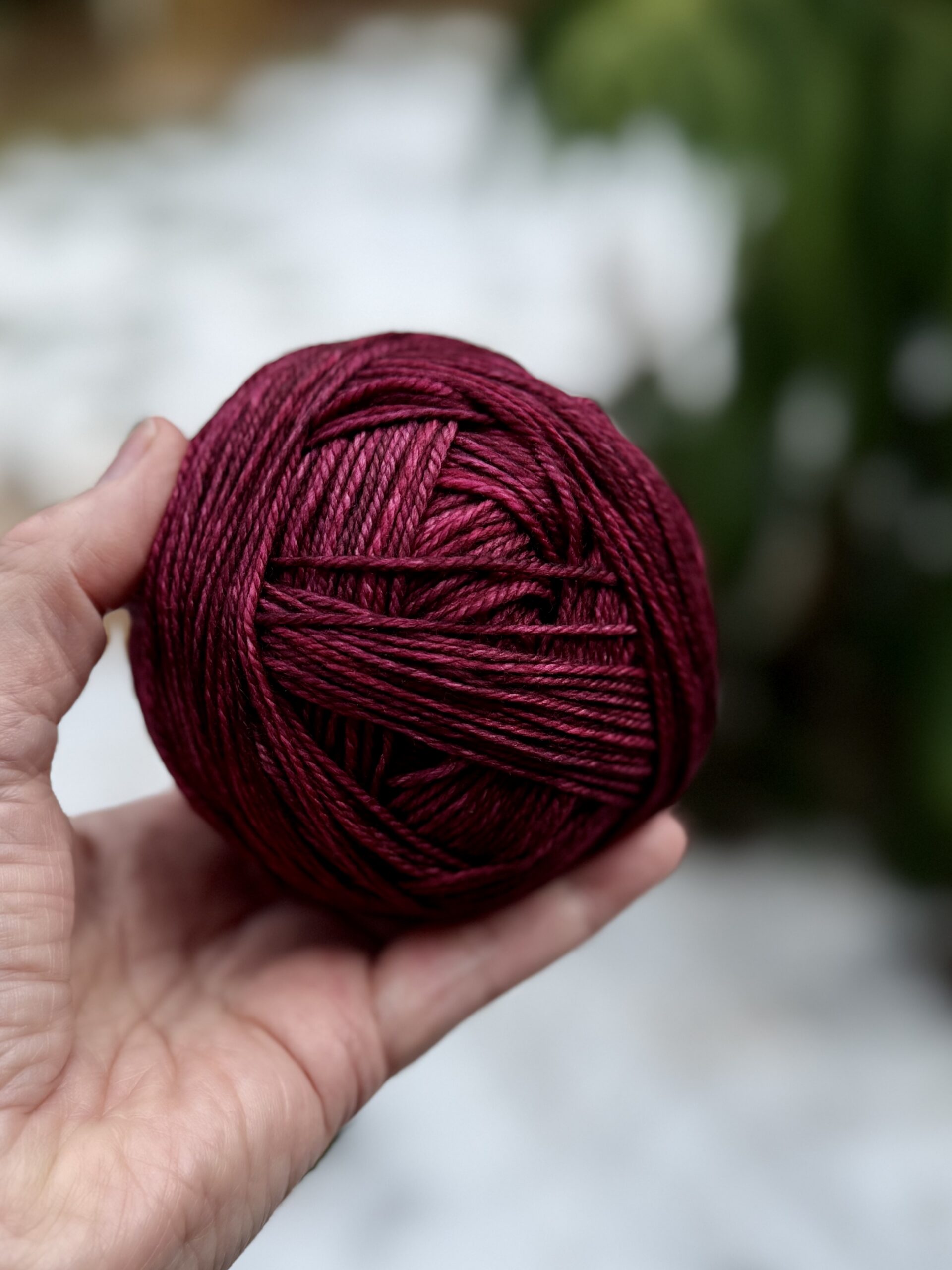 - Sophie Scarf #1 – Trellis by Yarn Hollow, a DK weight yarn with 60% merino/40% bamboo in the colorway Mushroom. (I have had 2 generous skeins – 620 yards each – in my stash since the early 2010s. That’s sweater quantity . . . but I’ve never used it because it has a “sheen” from the bamboo that I didn’t think I liked. I decided to use it for a Sophie Scarf, and lo and behold. . . the yarn is just lovely, sheen and all. It WILL become some sort of sweater now. Just sayin.) Note: Trellis yarn has been discontinued and Yarn Hollow is no longer in business.