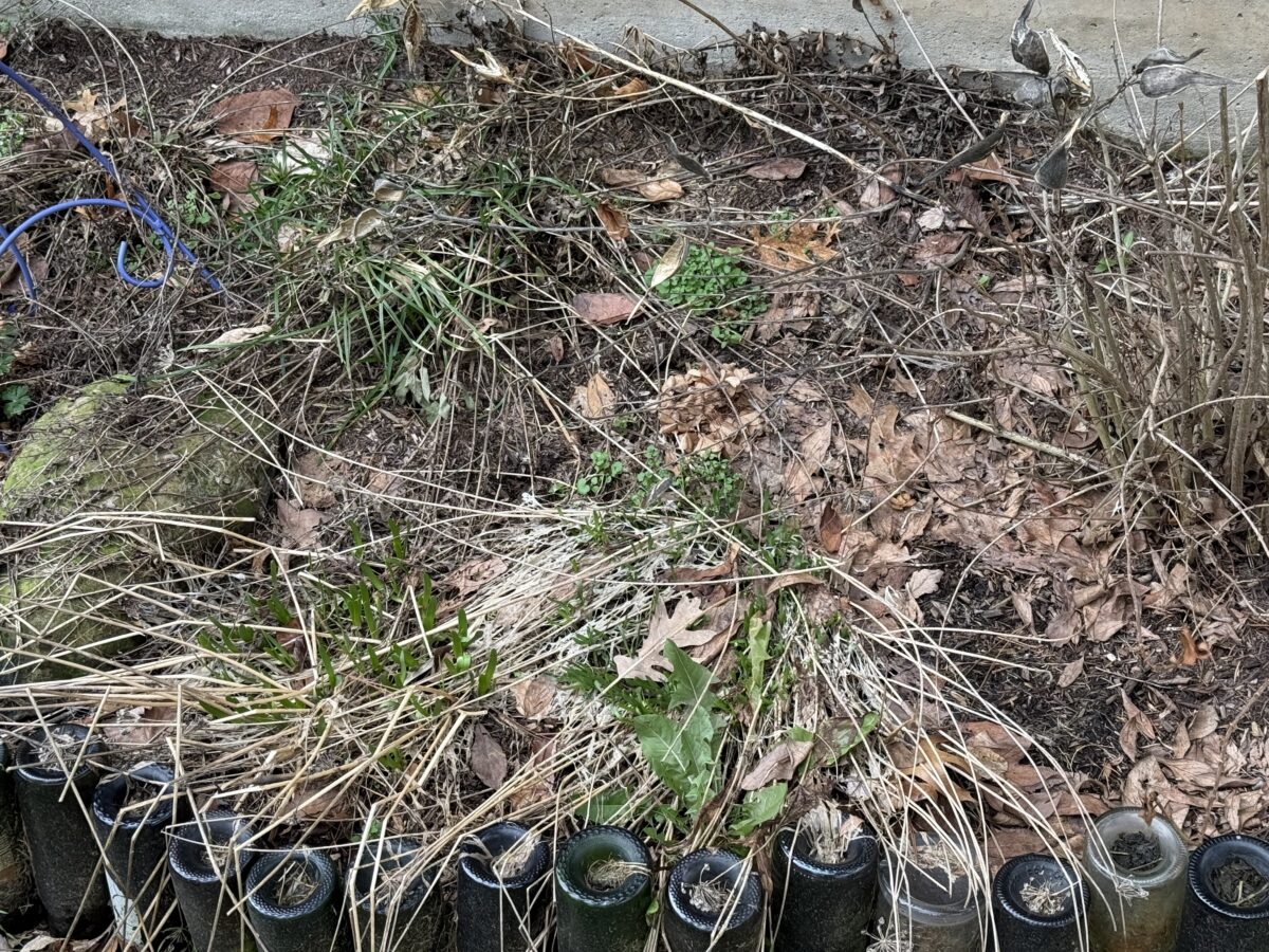While I’m busy being patient and practicing restraint, I’ll “work” in my garden by . . . observing and assessing, planning, making lists, organizing my tools and seeds, weeding (that’s always okay), and picking up all the sticks and branches – and the hundreds of pine cones – that fall in my garden over the winter.