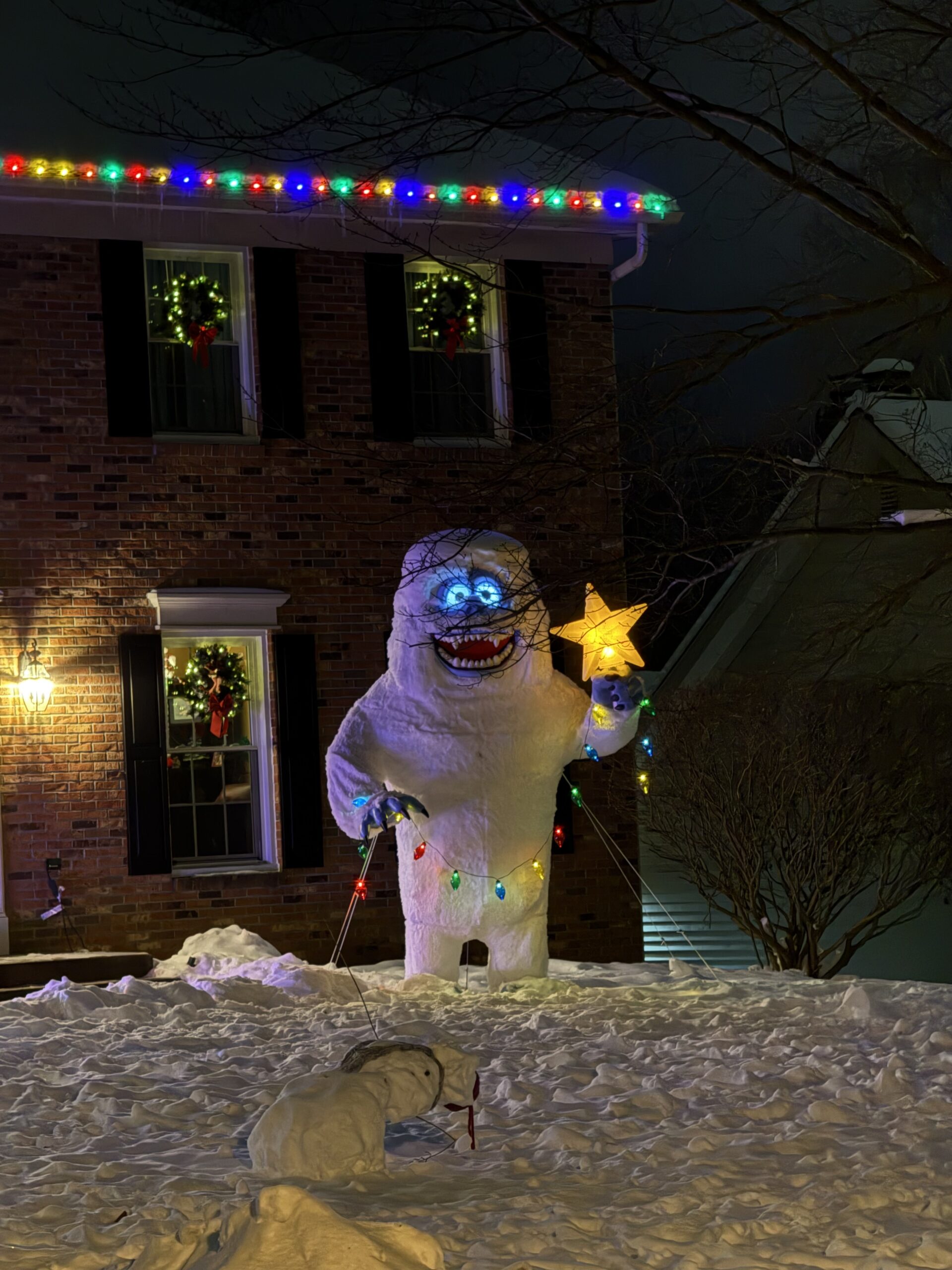 It’s a winter wonderland over there! Your house looks gorgeous at night with all of those lights. And JoJo with her face in the snow reminds me so much of Dixie, she loved snow. I hope the family calendar project is done soon.