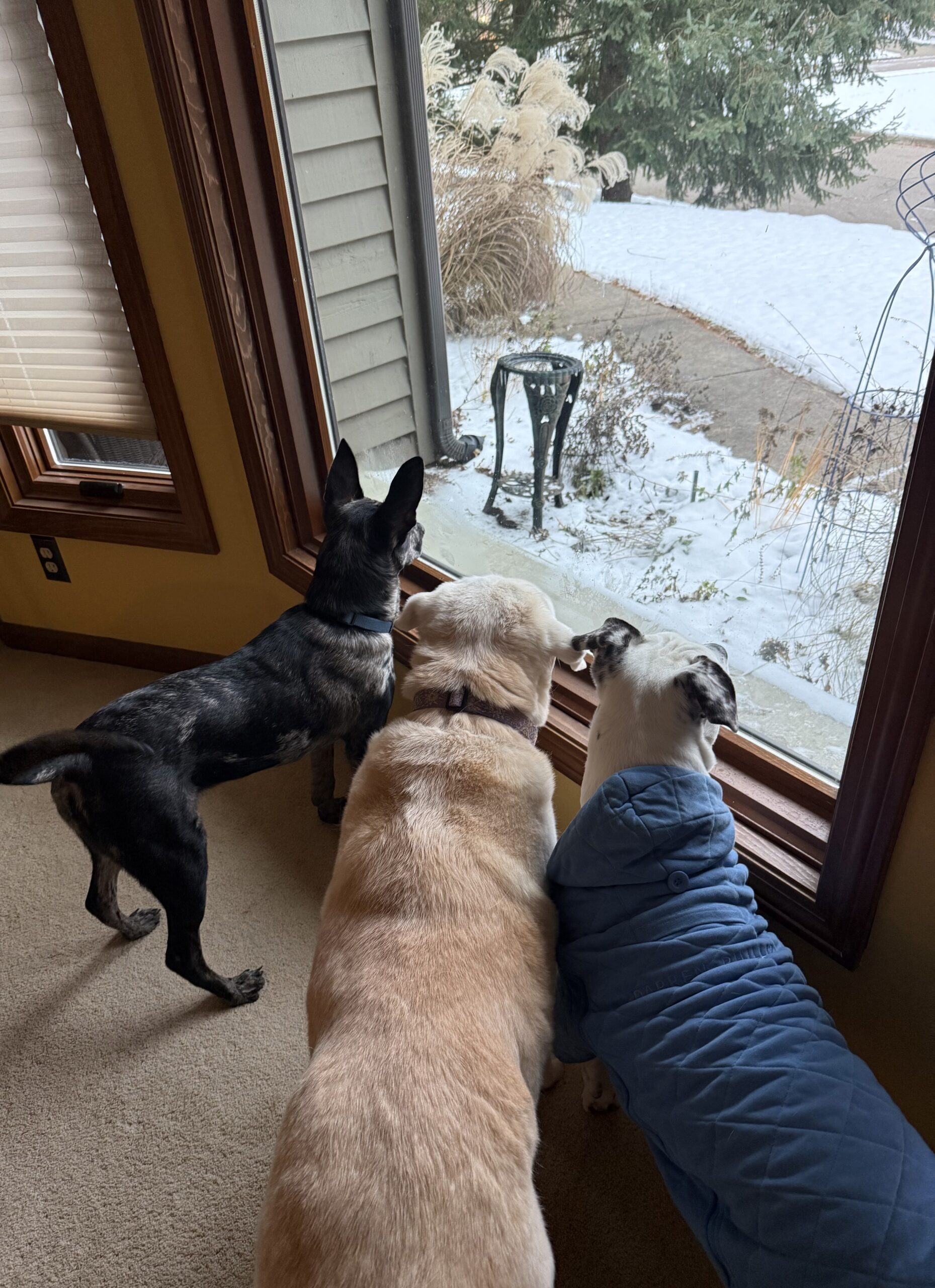 Is that an almost Michigan-shaped potato? Love seeing the kids and the pups (who were clearly entranced by something outside the window). We skipped right into deep winter here, too, and I’m counting the days until we head south and my skin stops drying and cracking.